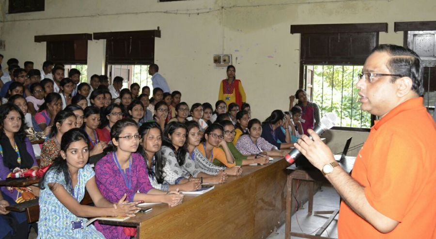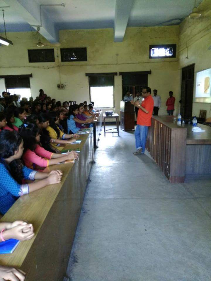 An interactive session then followed, wherein queries from students were smoothly answered by Mr. Ghosh. Students asked about the different opportunities, professional cum cultural growth, the challenges as well as lacunas arising in the ambit of Artificial Intelligence.