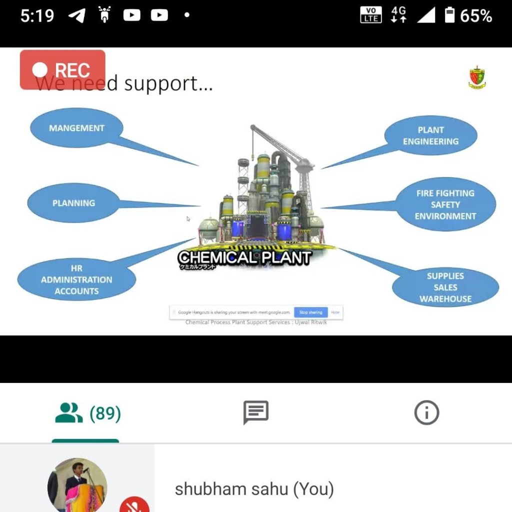 Mr. Ujjwal Ritwik commenced the session with a theme of “Chemical Processing Plant Support Service”. He spoke at length about the large efforts required for uninterrupted production in the Industries keeping the subsequent details of the work process in mind. He stressed about the need to follow safety protocols by giving an in-hand experience of the blast at the Tuticorin plant. He gave real-world examples through the instances of his life. He shared his journey of 40 years from BPCL, RELIANCE, BARC, and finally to KNPC, Kuwait with students. With a rise in demand for renewable energy resources, he believed sustainable development will open a new Avenue for Chemical Engineers.