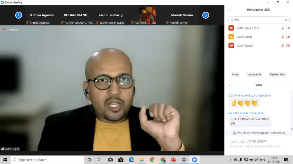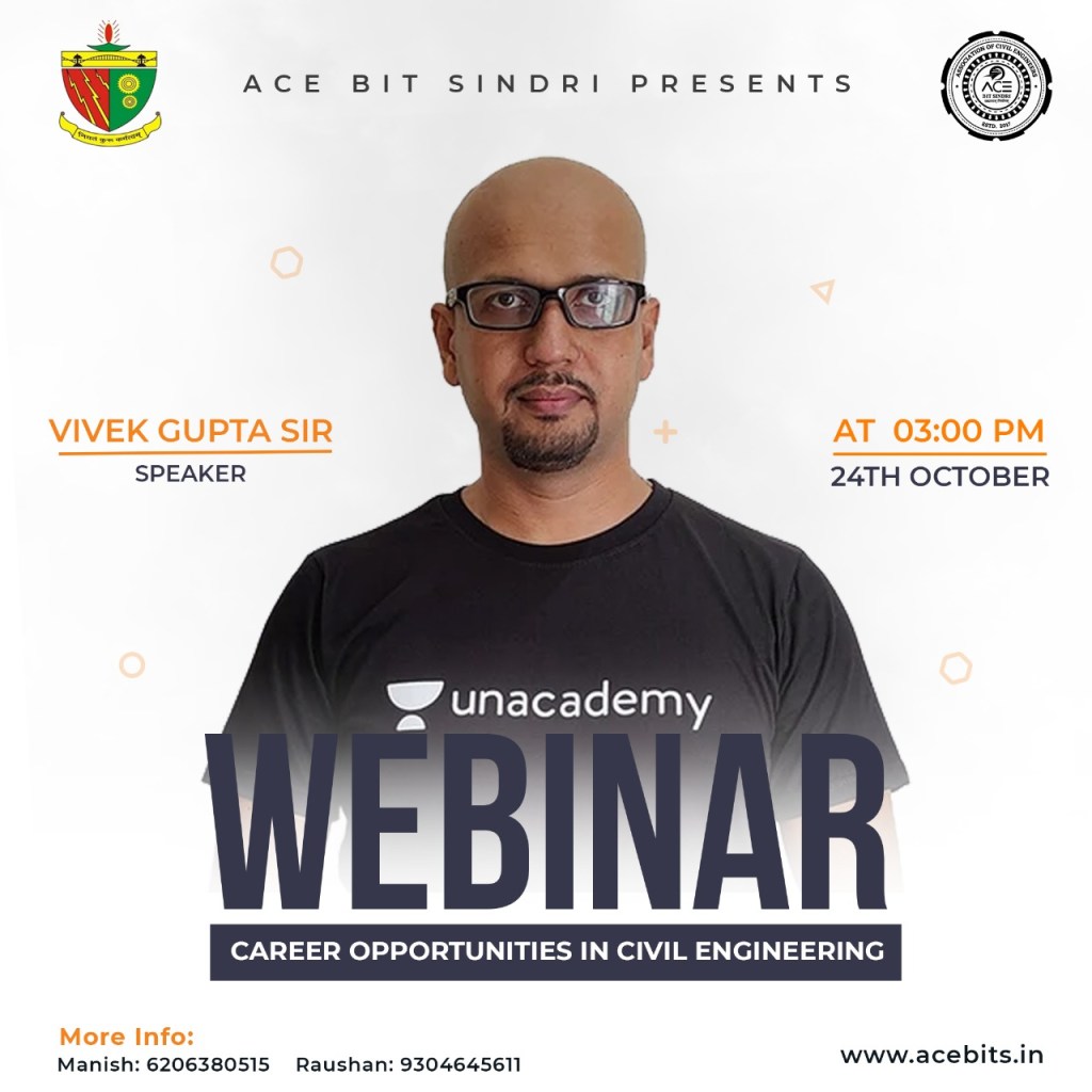 On Oct 24, 2021, a webinar was organised by the Association of Civil Engineers, BIT Sindri. The topic of the webinar was “Career Opportunities in Civil Engineering”. The keynote speaker for the event was Mr. Vivek Gupta, Ex-IES Officer, Rank- 10 and GATE, Rank-17, (MTech, IIT Delhi) and one of the best educators for Civil Engineering at the Unacademy platform.